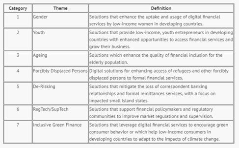 AFI Open Competition for FinTech Innovators – Recognizing the power of financial technology (FinTech) to create breakthrough solutions that support and scale quality financial services, Alliance for Financial Inclusion (AFI) is holding an open competition for FinTech innovators to showcase solutions that target low-income populations within the following seven themes: gender, youth, ageing, forcibly displaced persons, de-risking, regulatory technology/supervisory technology (RegTech/SupTech) and Inclusive Green Finance.